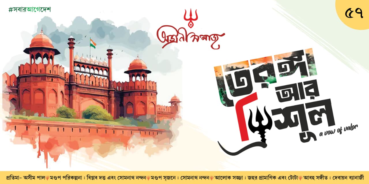57th Year Agrani Samaj presents — "Tiranga ar Trishul" From Red Fort to our hearts, From Tiranga to Trishul, A story of valor begins… #sobaragedesh