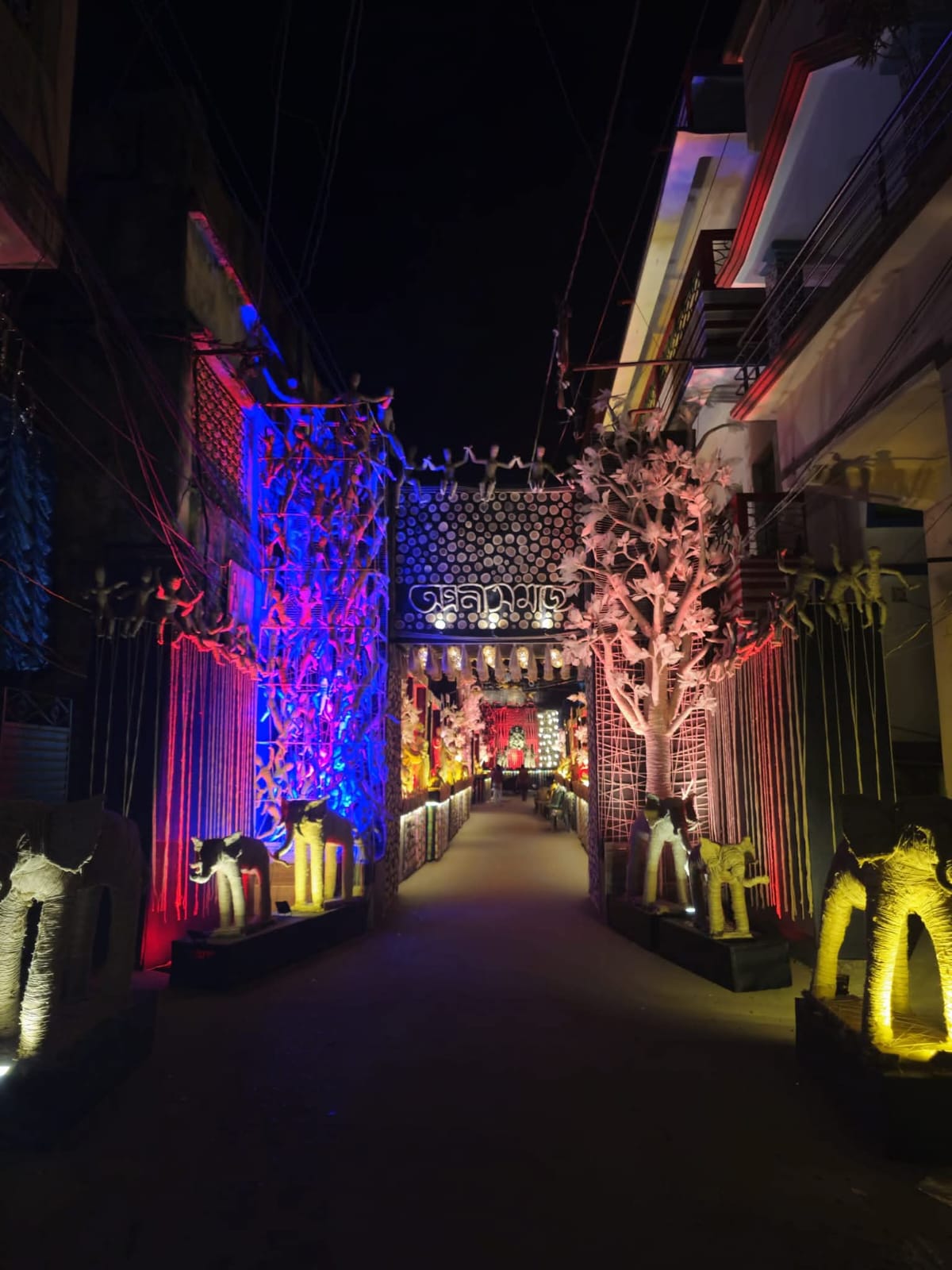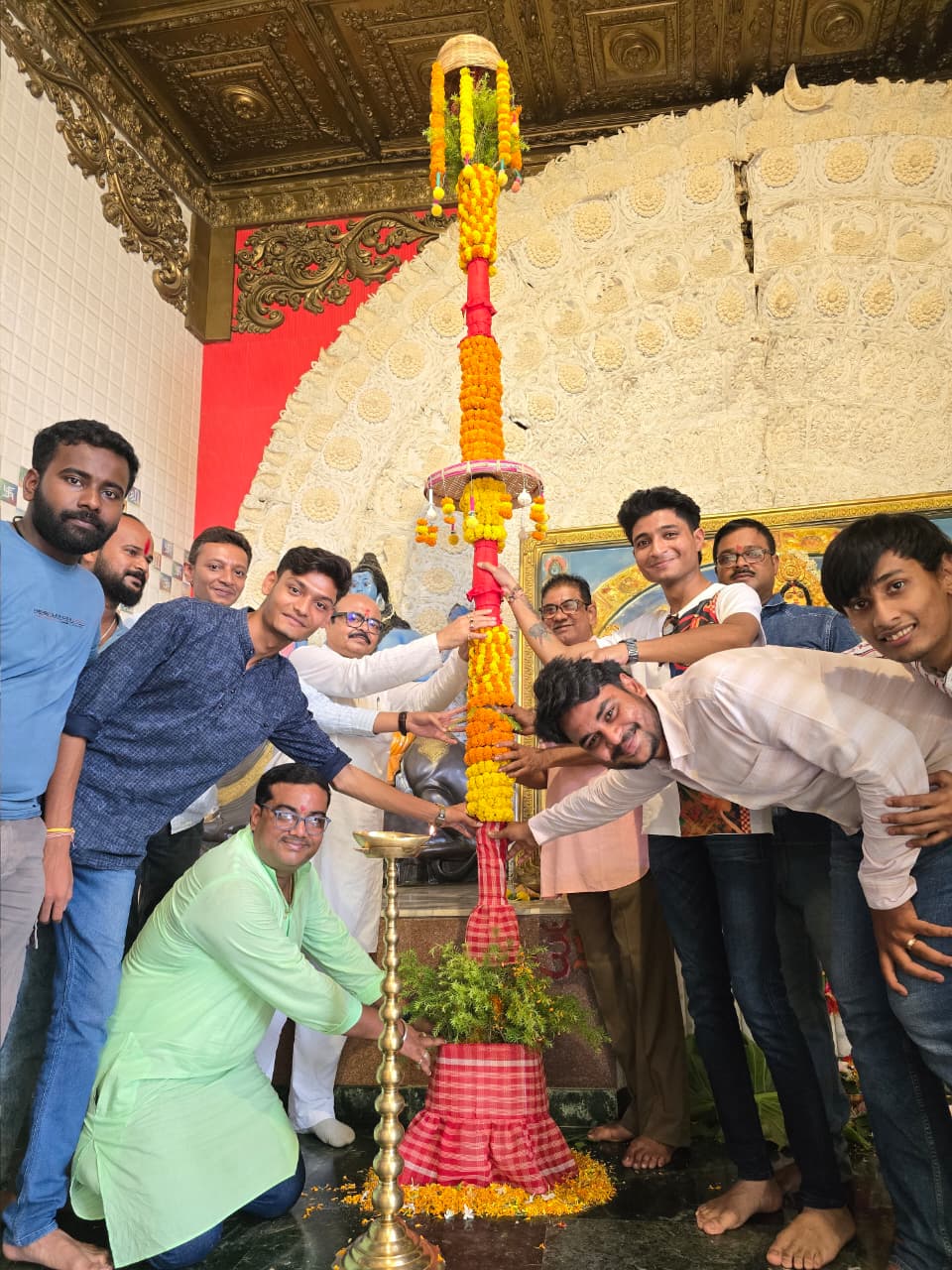 The sacred rituals of Khuti Pujo have marked the formal start of Agrani Samaj’s 57th year of Durga Puja celebrations. What began in 1944 as a football club has today become a symbol of tradition, unity, and devotion for the people of Sainthia. With this Pujo, we step into yet another year of cultural pride and spiritual grace. May Maa Durga bless us with strength, harmony, and joy as we prepare to welcome her home. This year’s theme — “Tiranga ar Trishul” — carries forward our legacy of art, faith, and patriotism. Together, let us celebrate not just a festival, but the spirit of community.